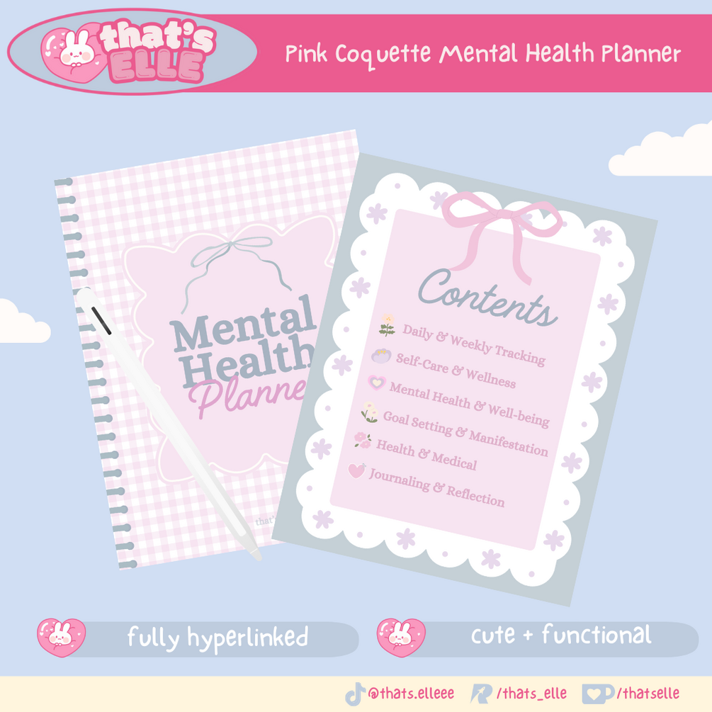 Introducing the ๐™‹๐™ž๐™ฃ๐™  ๐˜พ๐™ค๐™ฆ๐™ช๐™š๐™ฉ๐™ฉ๐™š ๐™ˆ๐™š๐™ฃ๐™ฉ๐™–๐™ก ๐™ƒ๐™š๐™–๐™ก๐™ฉ๐™ ๐™‹๐™ก๐™–๐™ฃ๐™ฃ๐™š๐™ง, a 57-page fully hyperlinked digital planner designed to support your mental well-being.